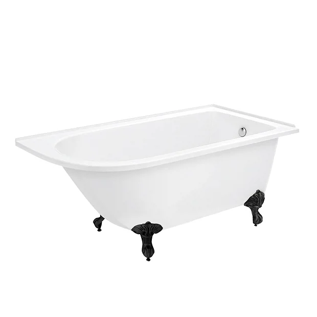 A stunning 1550mm compact roll top showering bath with traditional matt black feet, enjoy the feeling of luxury with this classical free standing shower bath. Designed to fit neatly into a corner, this bath is the ideal solution for families looking to add a little luxury, whilst keeping an eye on space.