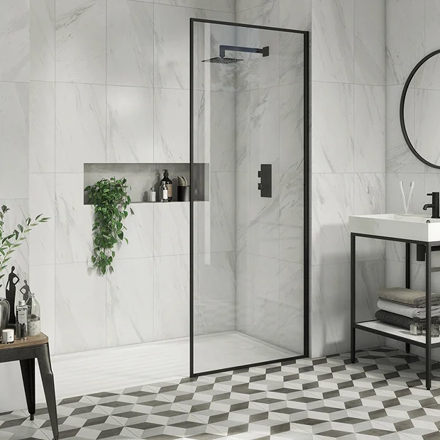 Make your shower a focal point of the bathroom with the Arezzo Square Framed Wetroom Screen with Tray. The striking frame in matt black aluminium instantly lends your space a modern, designer feel, the generously proportioned walk in shower tray is 1400mm wide, providing a decent sized space for drying off after your shower. Its low profile design in glossy white acrylic has a minimalist appeal and is light and durable too. Conveniently, the surface is also super easy to clean. To up the indulgence factor even further, pair the Arezzo shower door with a matching Matt Black Fixed Shower Head from the same brand.