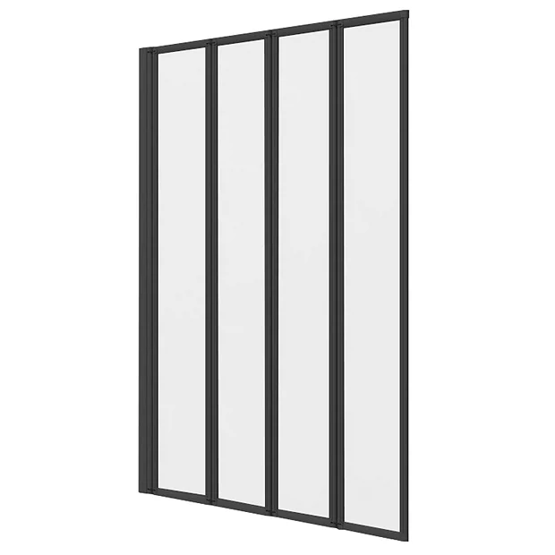 The Arezzo square single ended bath tub with 800mm wide matt black folding bath screen is great for creating a practical, easy to use shower space, this screen is created from four folding panels in a concertina design.Â