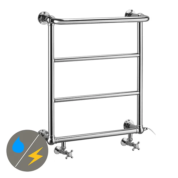 This classic traditional design, is to be plumbed into the main central heating system and used as a radiator/towel rail. It also can be wired into the electric mains for summer towel warming.