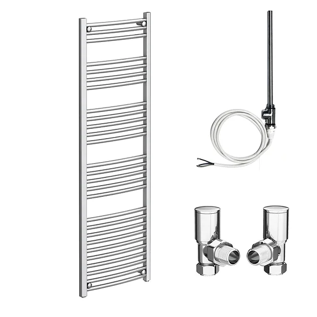 Diamond 500 x 1600mm Curved Heated Towel Rail (incl. Valves + Electric Heating Kit)
