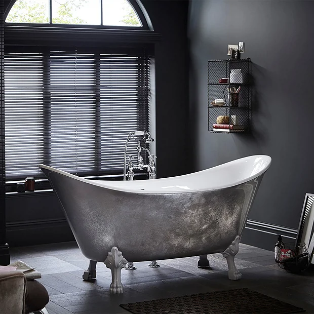 Make a style statement with the sumptuous Lyddington Freestanding Acrylic Bath from Heritage. Its eye-catching metallic effect finish will make this stunning bath the centrepiece of your bathroom. Available in Copper, Stainless Steel and Gold effect finishes. Comes complete with a chrome clicker waste and overflow and classic white lion feet. For peace of mind this bath comes with a lifetime guarantee against manufacturing defects.