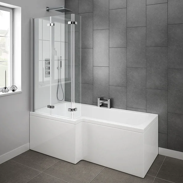 Milan L-Shaped Shower Bath 1700mm (Inc. Double Hinged Screen + Acrylic Panel)