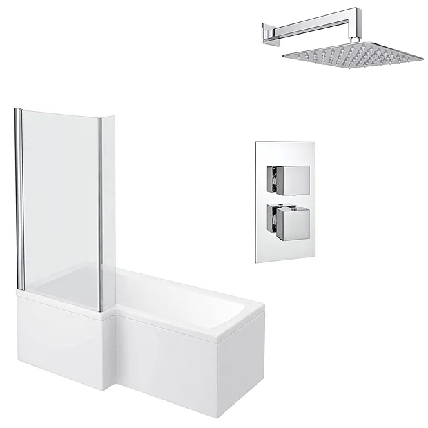 Milan Shower Bath + 1 Outlet Concealed Thermostatic Shower Package (1700mm L Shaped with Screen + Panel)