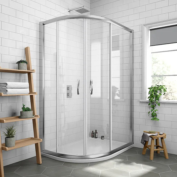 Step into a spacious shower with the Newark Offset Quadrant Enclosure. Framed by elegant curving doors, this shower cubicle creates a soft contour in your bathroom, harmonising the space. Fit this corner shower easily to left- or right-hand shower trays thanks to the fixture’s practical reversible design. Toughened 5mm glass ensures durability and safety. This stylish shower enclosure is finished with satin chrome frames for timeless appeal in your bathroom. This particular option measures 760mm in length and 900mm in width.