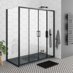 The on-trend Toreno matt black easy fit side panel, featuring 6mm toughened safety glass with a stylish matt black profile. Combine with a Toreno matt black hinged, bi-fold or sliding shower door (sold separately) to create a complete shower enclosure.